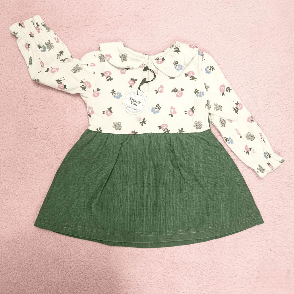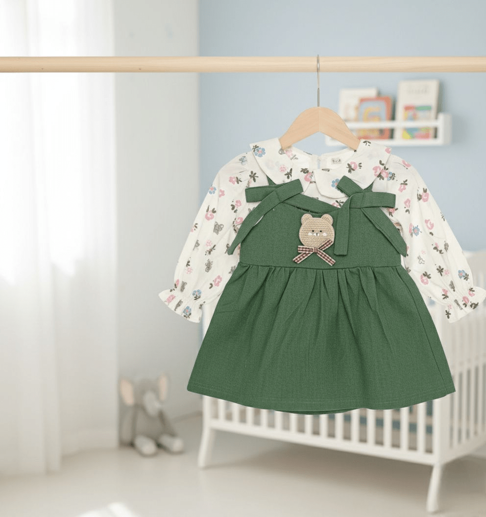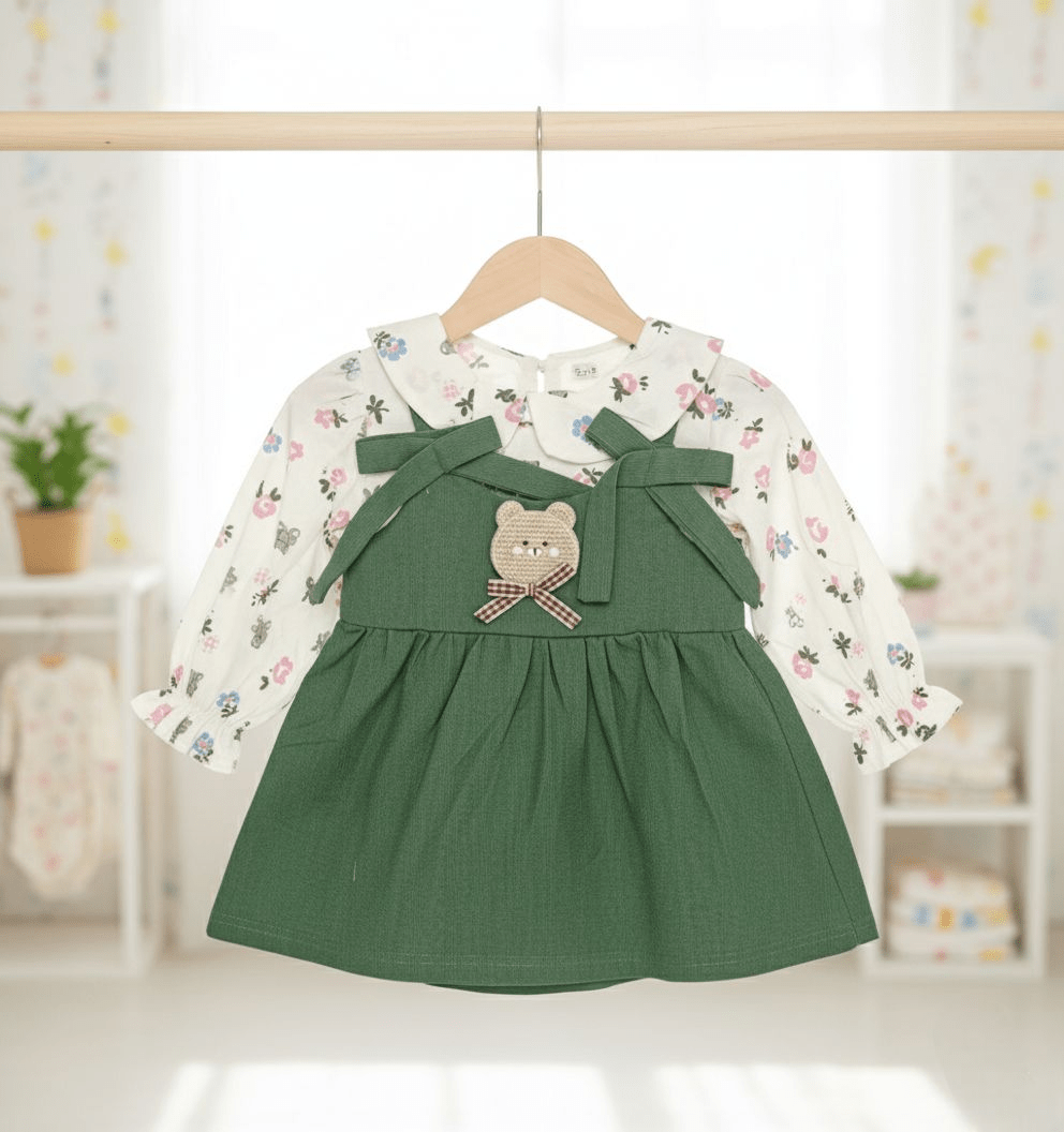 আপনার সোনামণির জন্য সুন্দর পোশাক! এই আকর্ষণীয় সবুজ ফ্রক এবং ফ্লোরাল সাদা শার্টটি শীত মৌসুমের জন্য আদর্শ। ৬ মাস থেকে ৩.৫ বছর বয়সীদের জন্য বিভিন্ন আকারে উপলব্ধ। আরামদায়ক এবং স্টাইলিশ পোশাকের জন্য এখনই কিনুন।